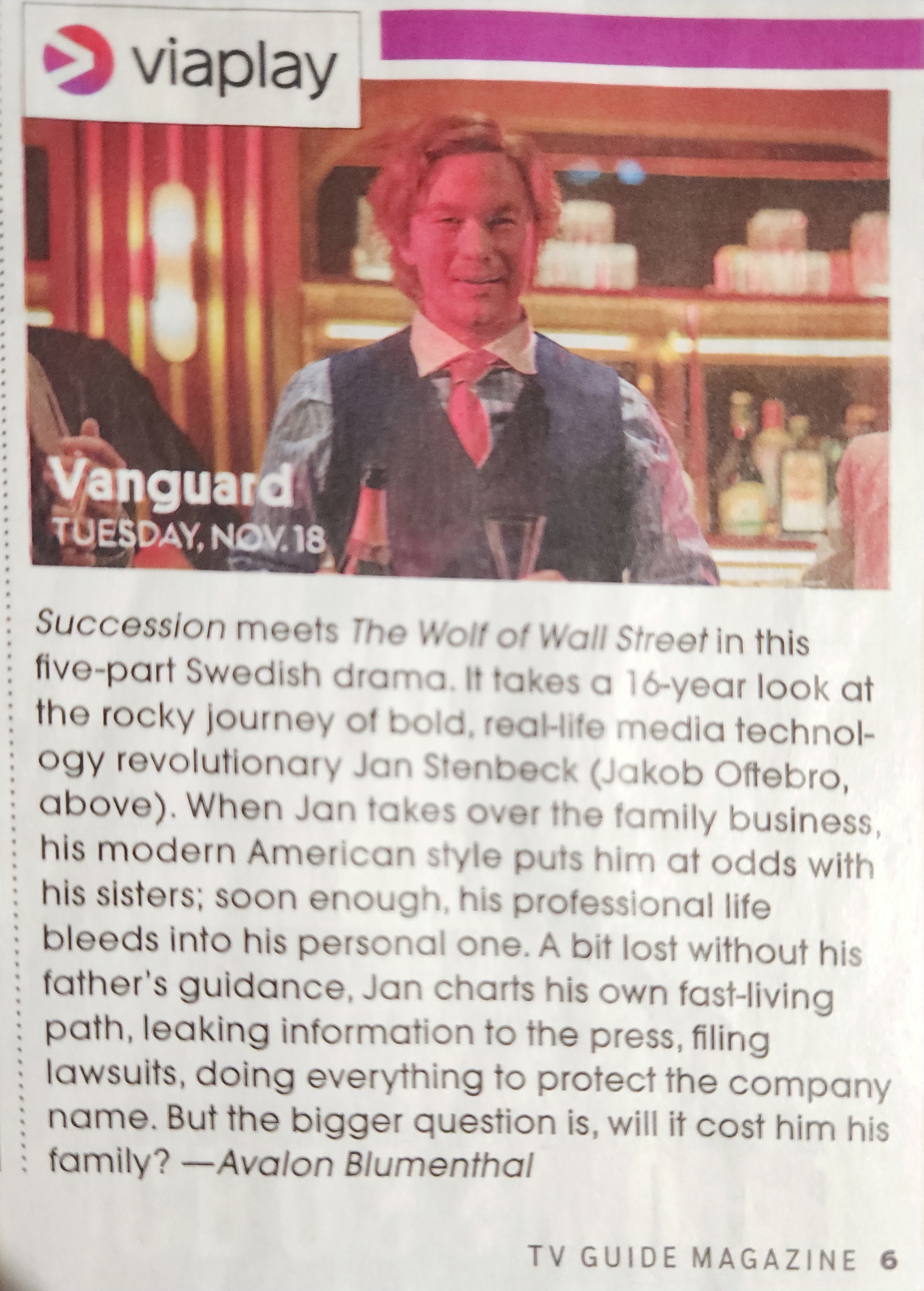 TV Guide Magazine: “Succession meets The Wolf of Wall Street”